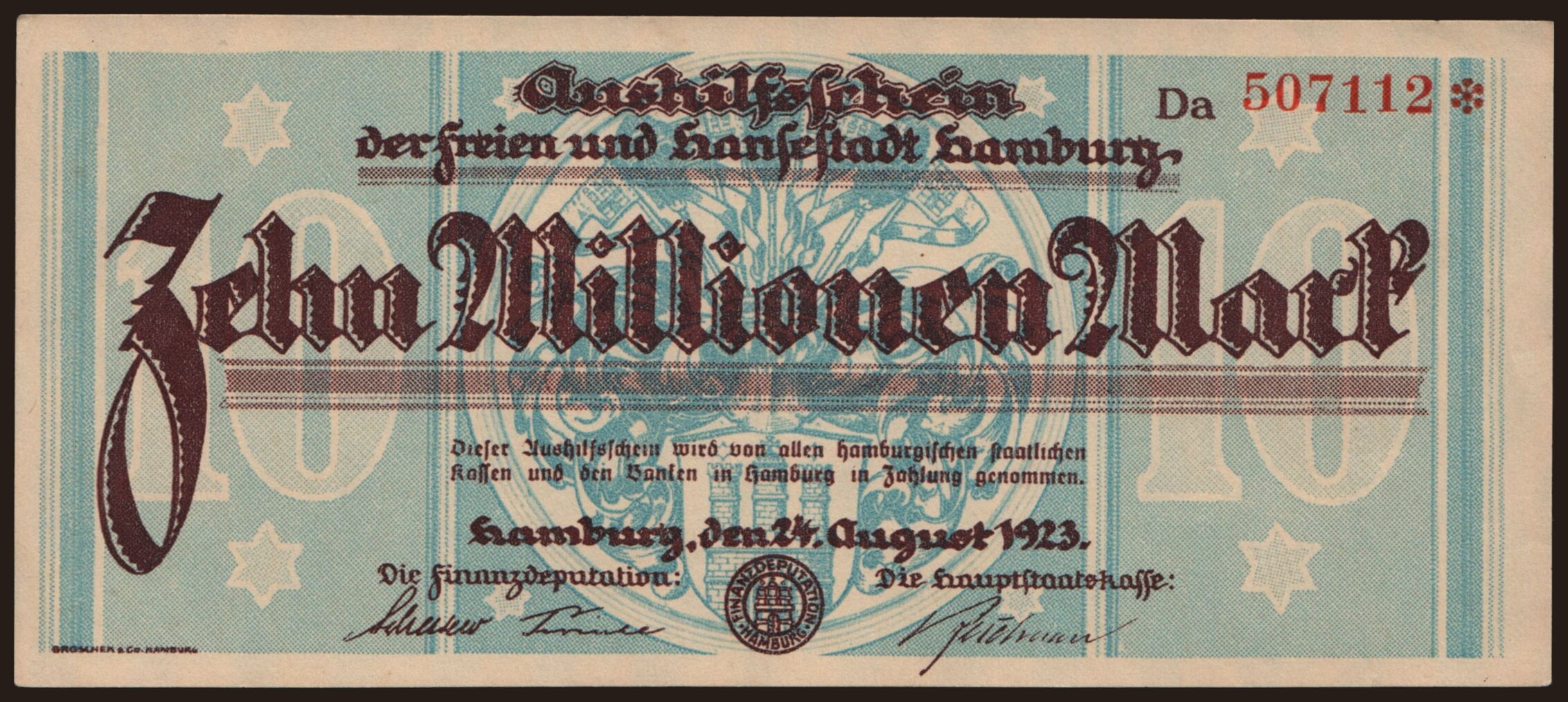 Hamburg/ Finanzdeputation und Hauptstaatskasse, 10.000.000 Mark, 1923