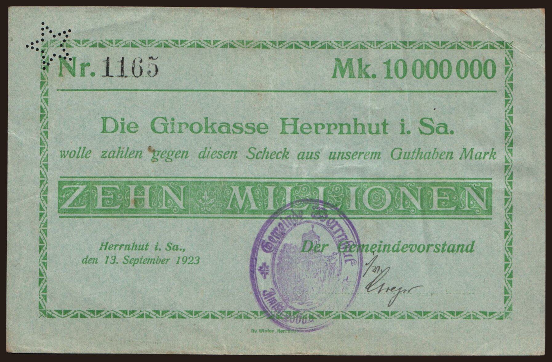 Herrnhut/ Gemeindevorstand, 10.000.000 Mark, 1923