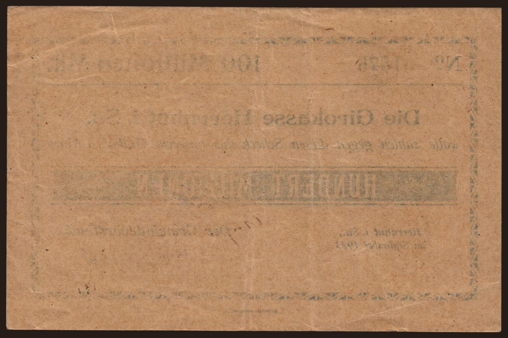 Gräfrath/ Stadt, 100.000.000 Mark, 1923