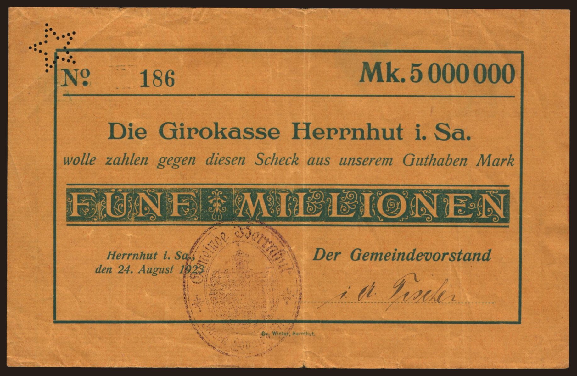 Herrnhut/ Gemeindevorstand, 5.000.000 Mark, 1923