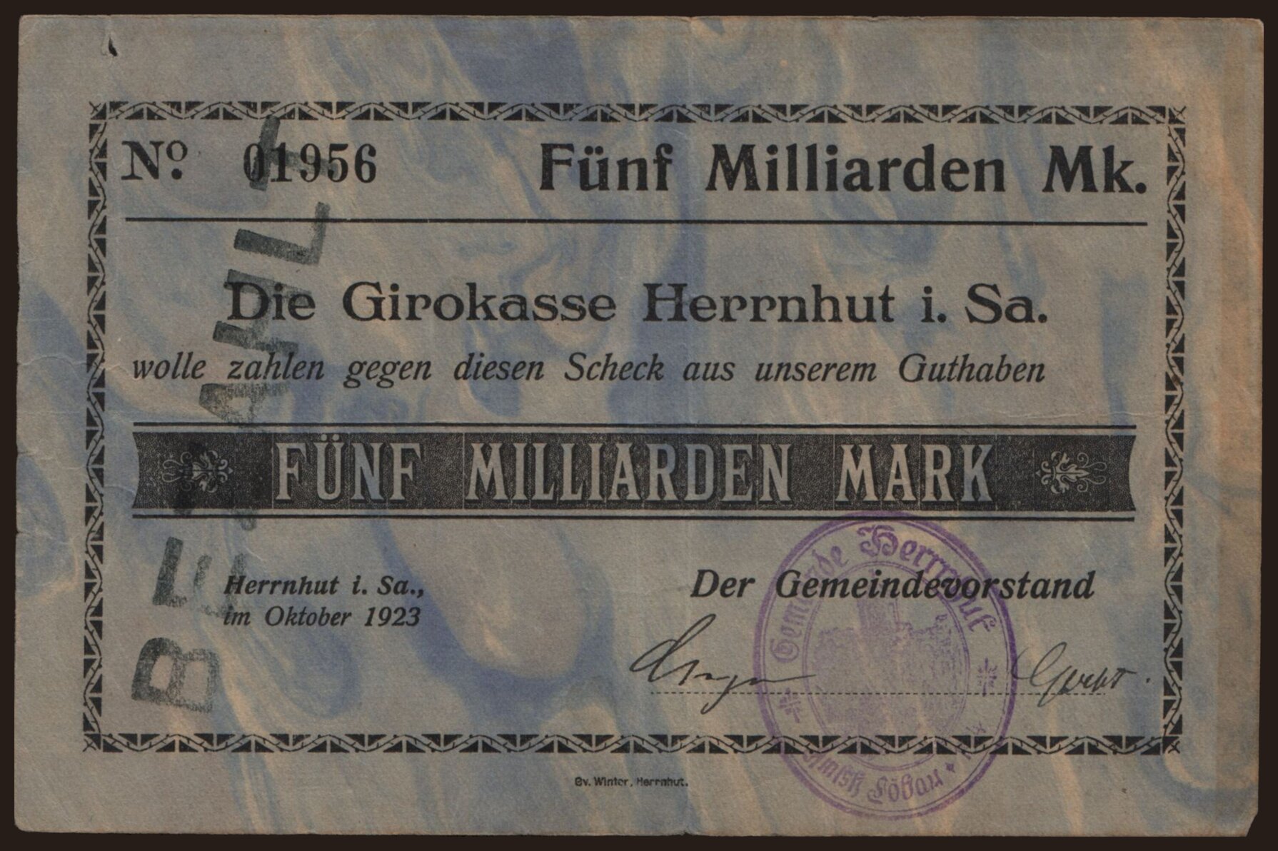 Herrnhut/ Gemeindevorstand, 5.000.000.000 Mark, 1923