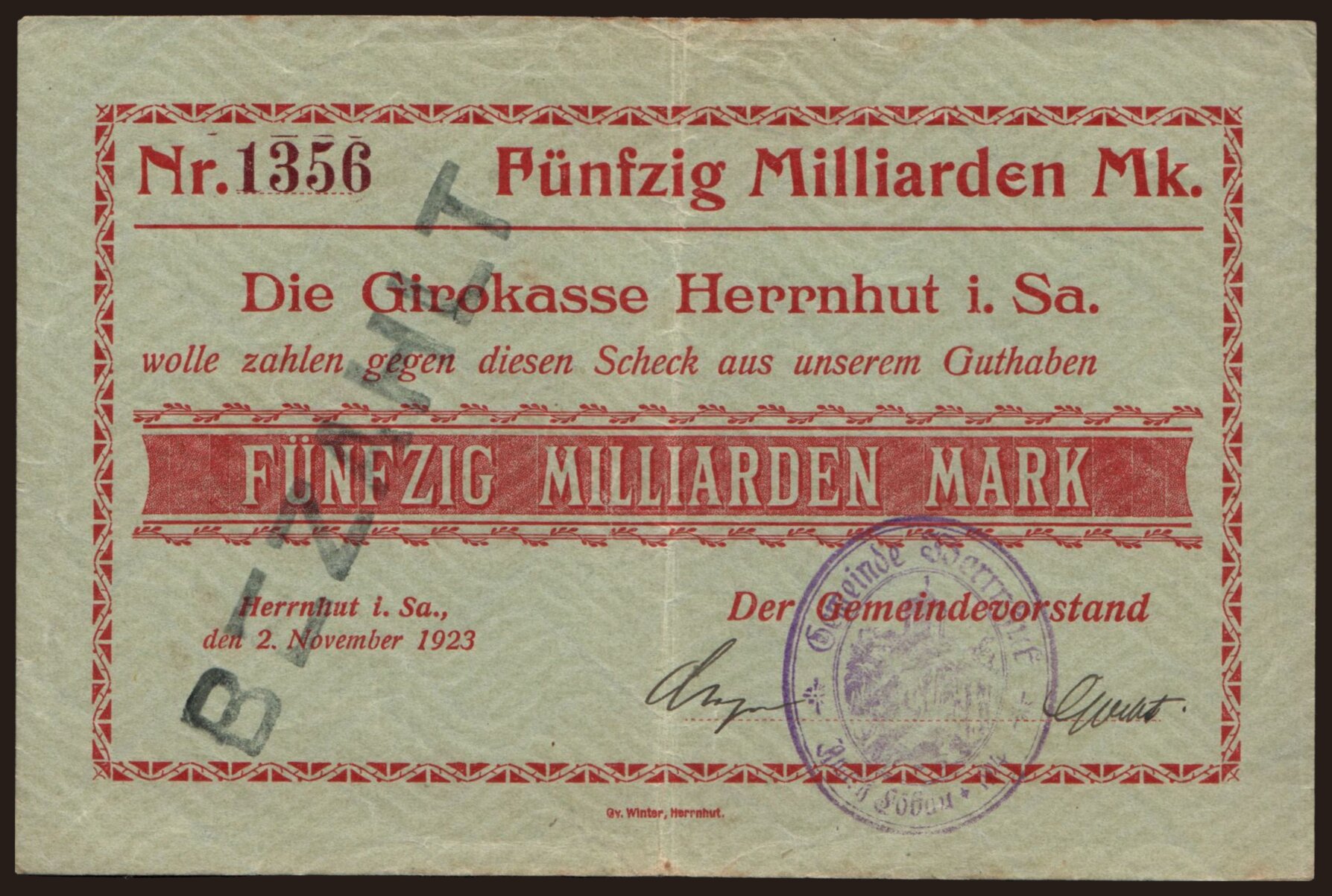 Herrnhut/ Gemeindevorstand, 50.000.000.000 Mark, 1923