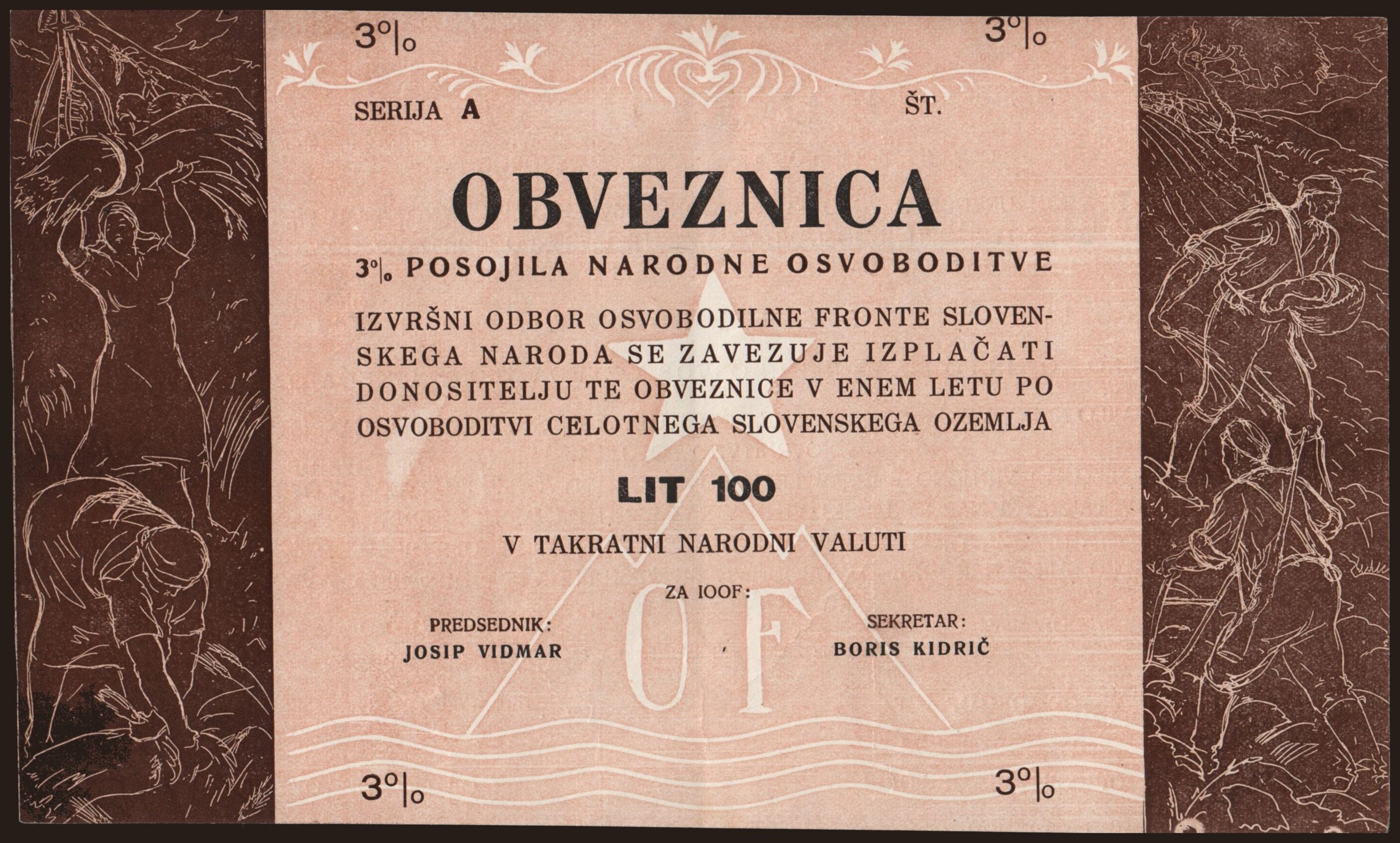 Izvršni odbor Osvobodilne fronte, 100 lit, 1943