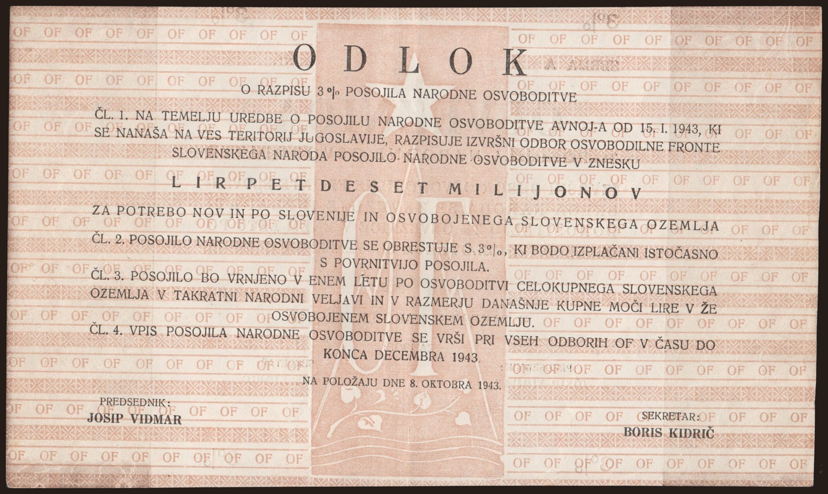 Izvršni odbor Osvobodilne fronte, 10.000 lit, 1943