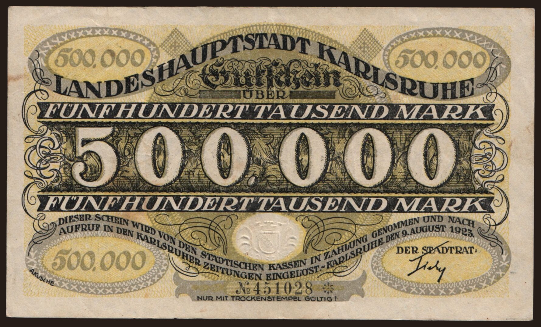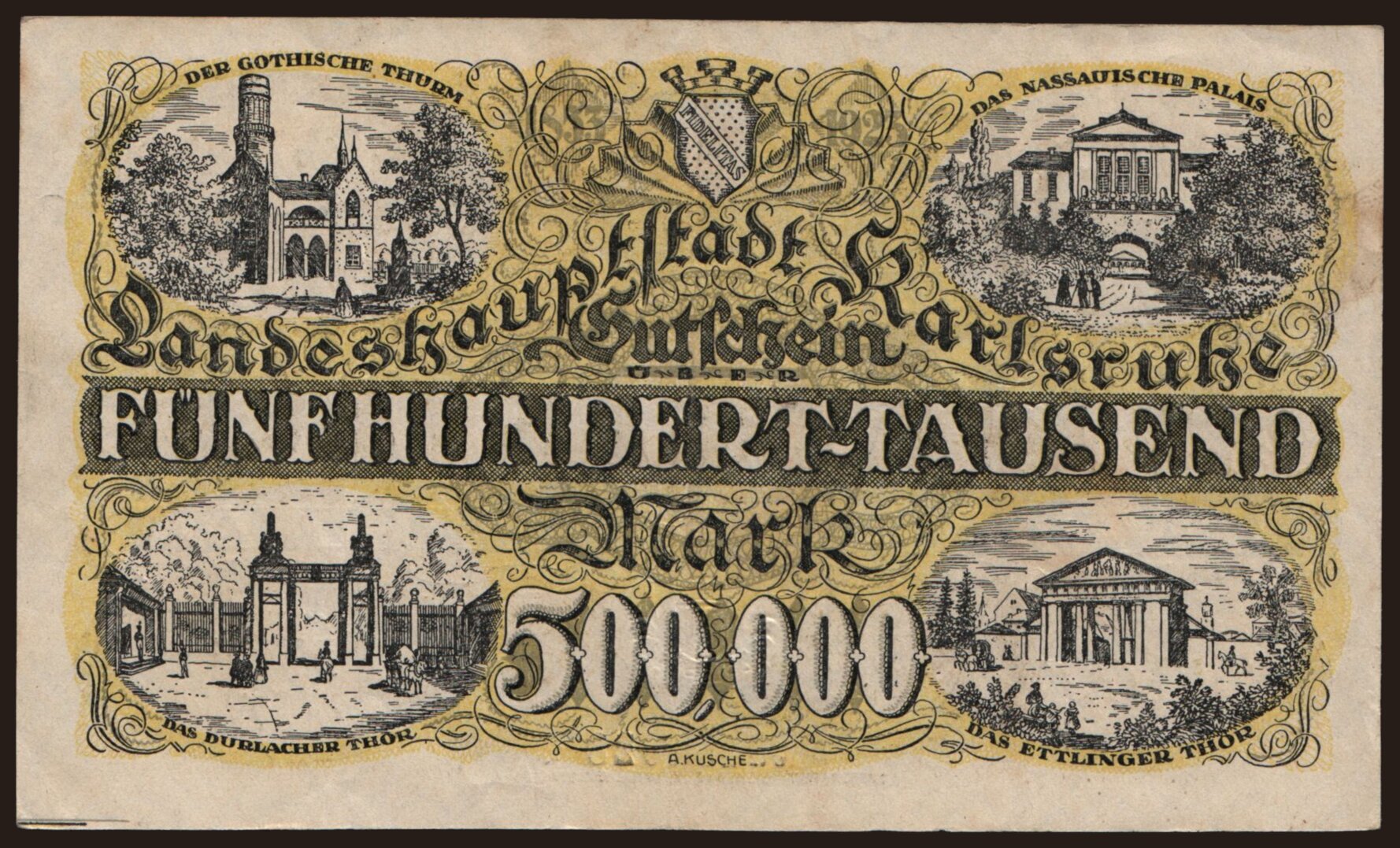 Karlsruhe/ Landeshauptstadt, 500.000 Mark, 1923