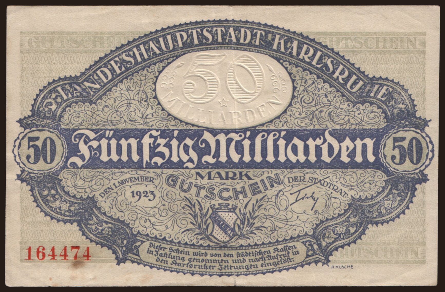 Karlsruhe/ Stadt, 50.000.000.000 Mark, 1923