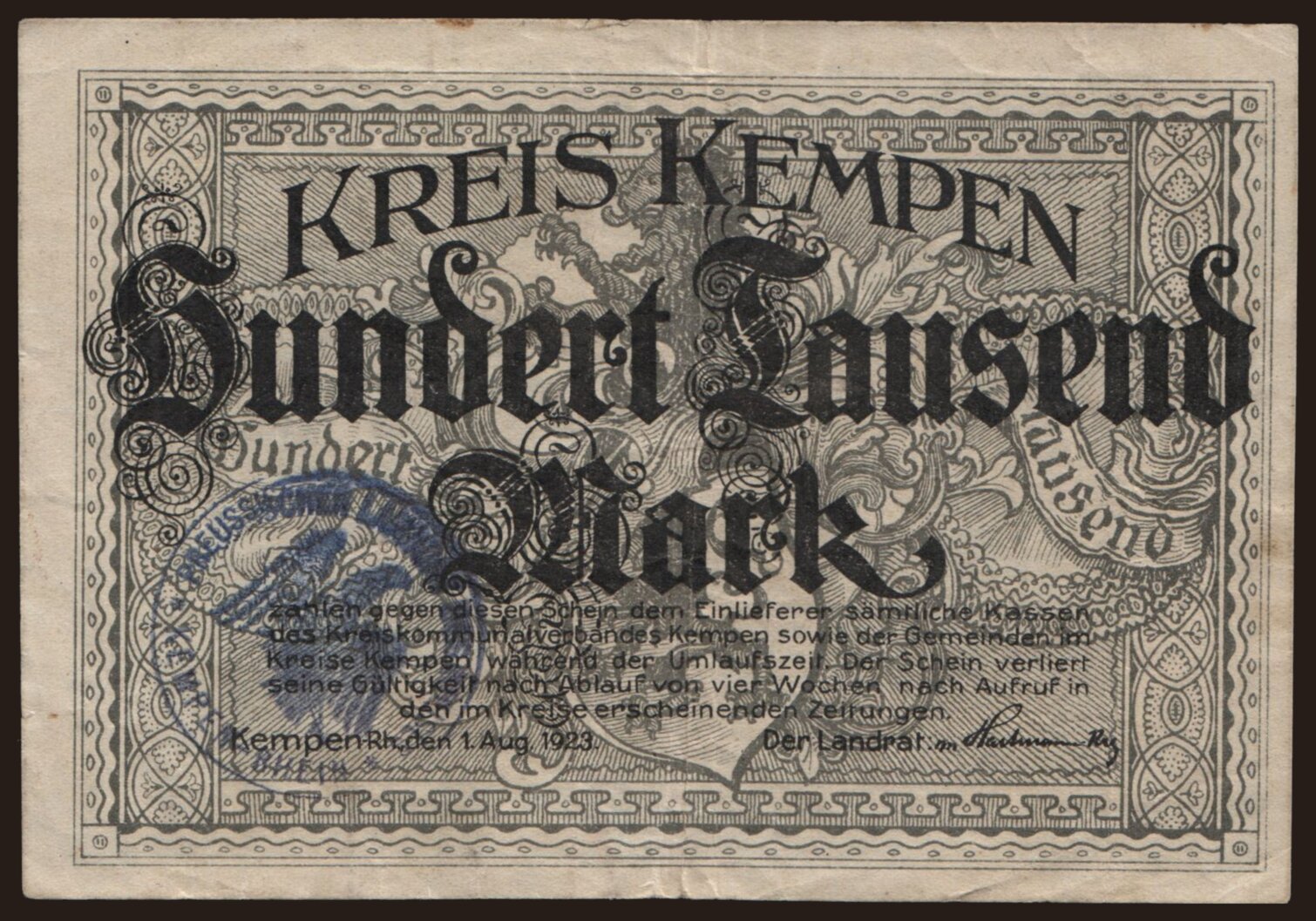 Kempen/ Kreis, 100.000 Mark, 1923