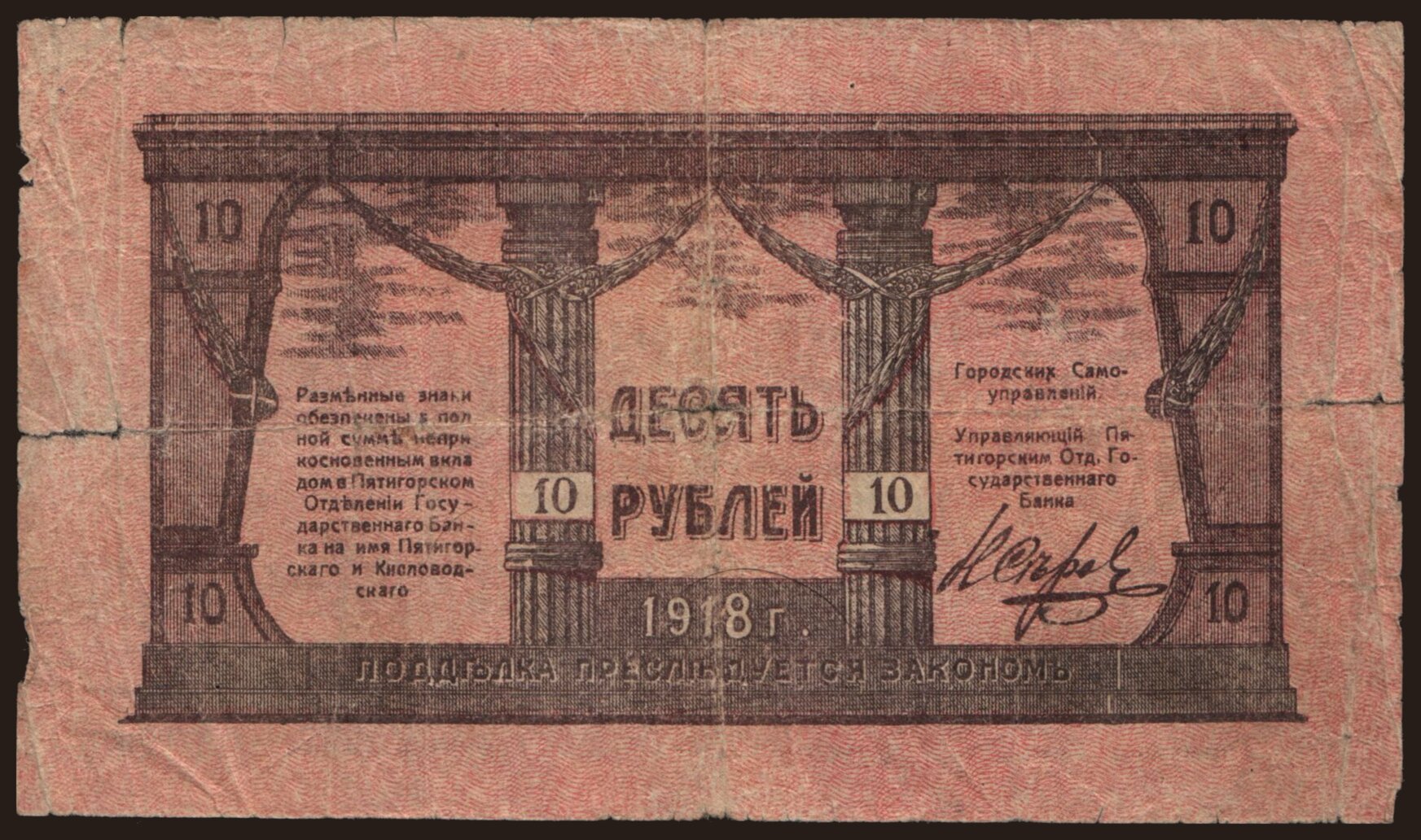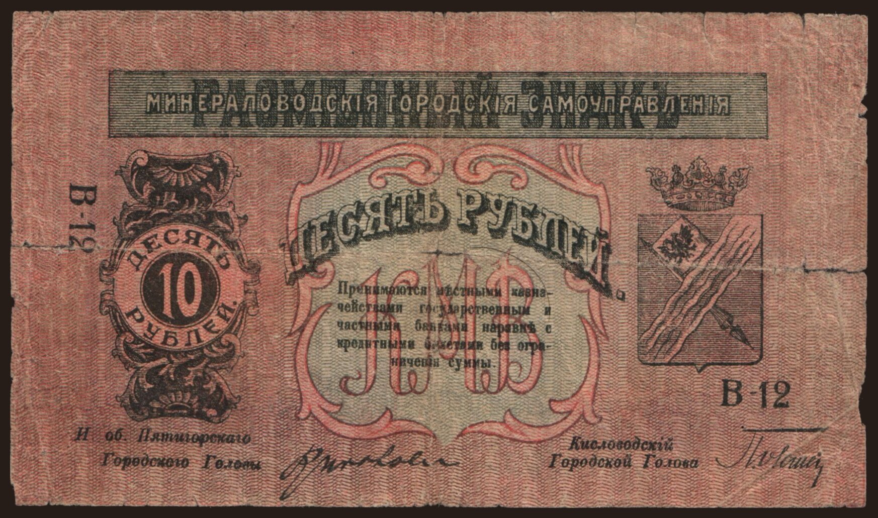 Kislovodsk/ Mineralovodskie Gorodskie Samoupravlenija, 10 rubel, 1918