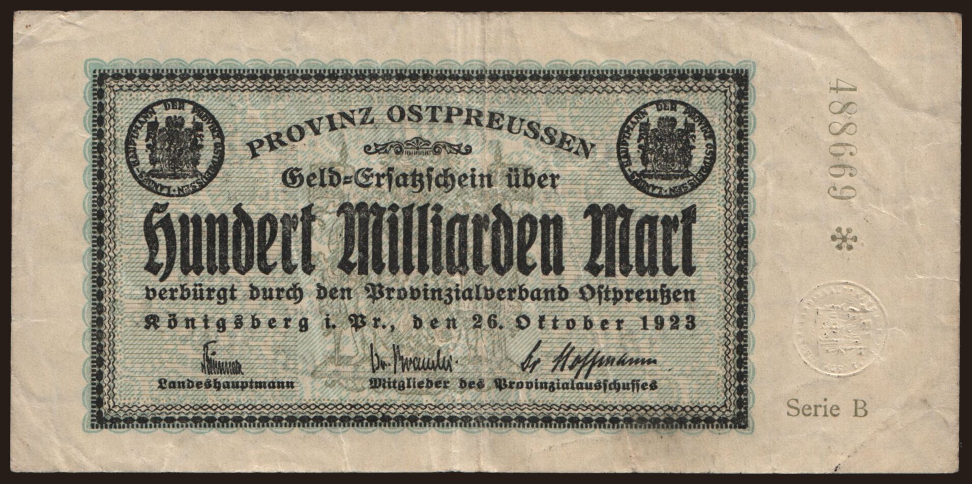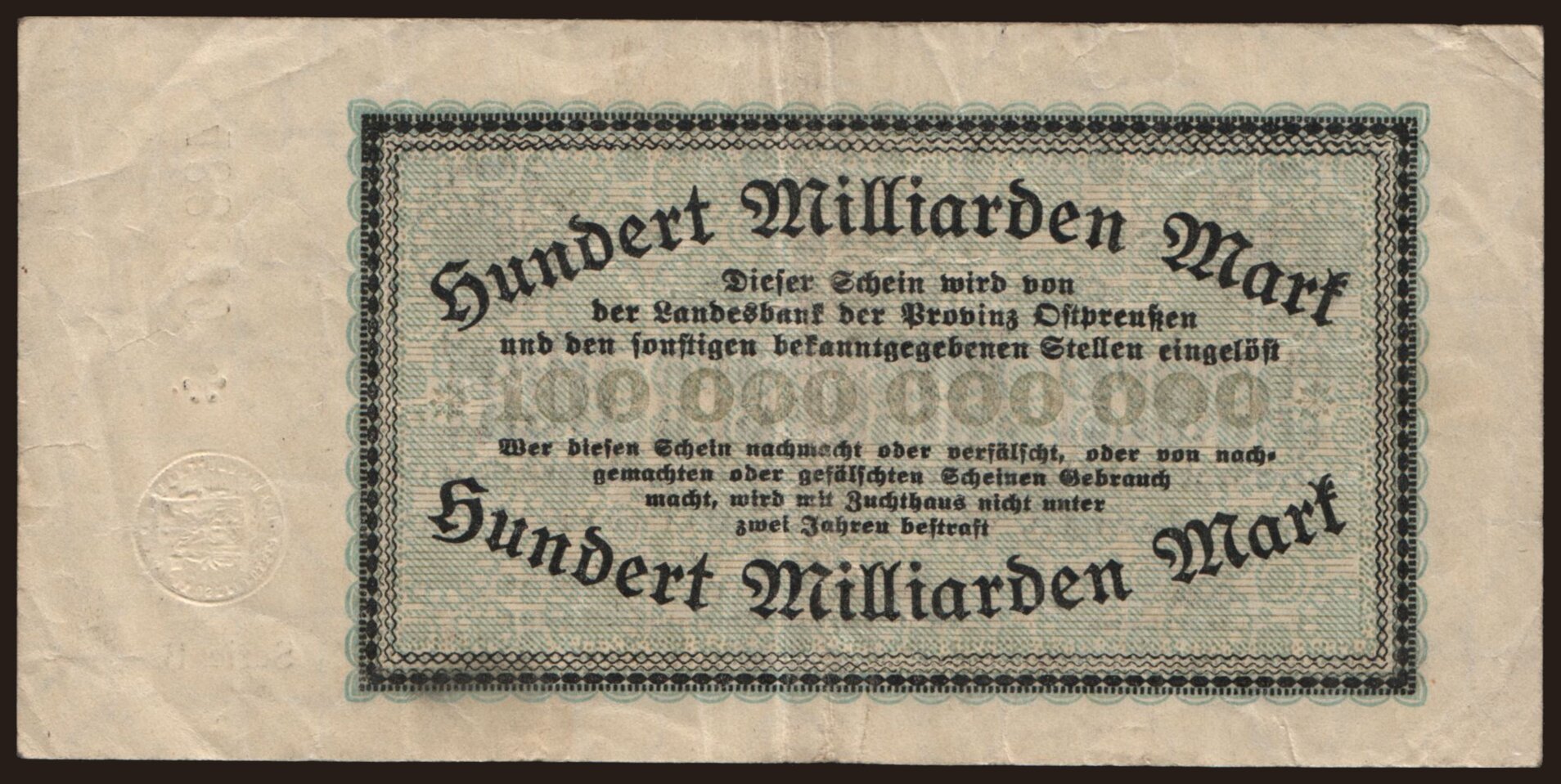 Königsberg/ Provinzialverband Ostpreussen, 100.000.000.000 Mark, 1923