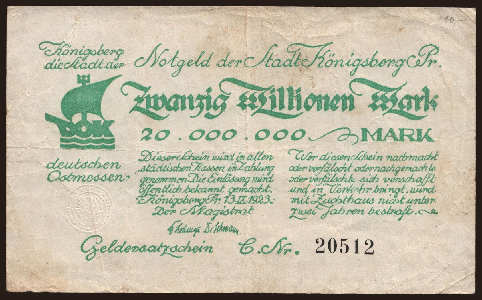 Königsberg/ Provinzialverband Ostpreussen, 20.000.000 Mark, 1923