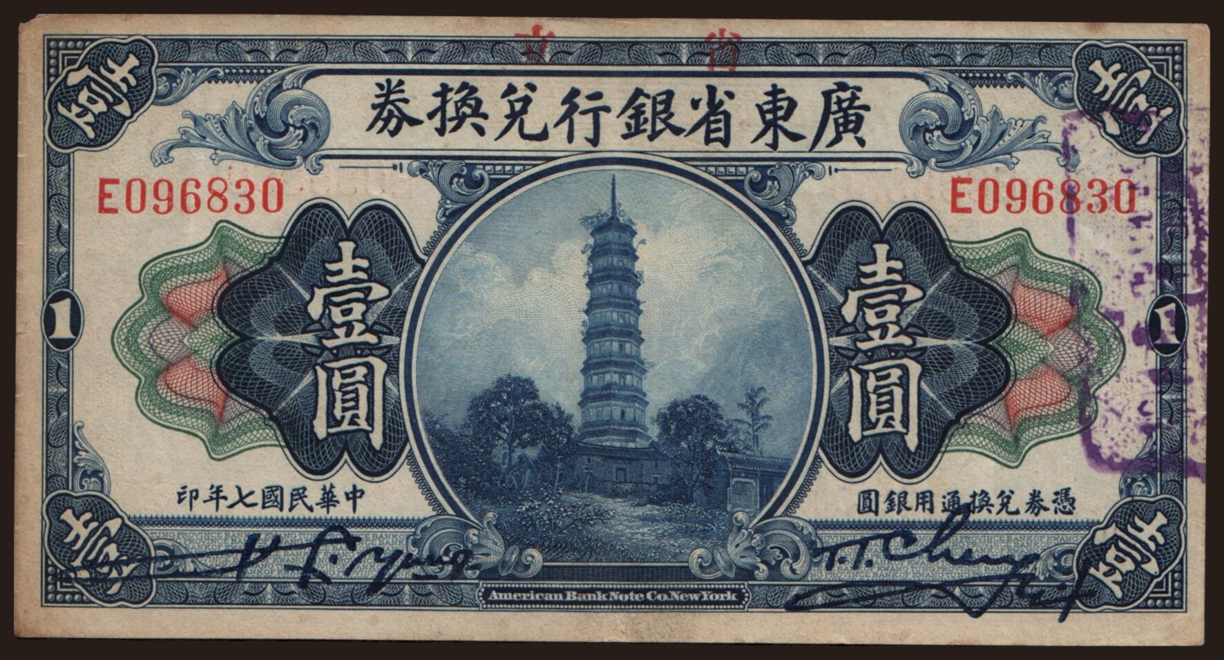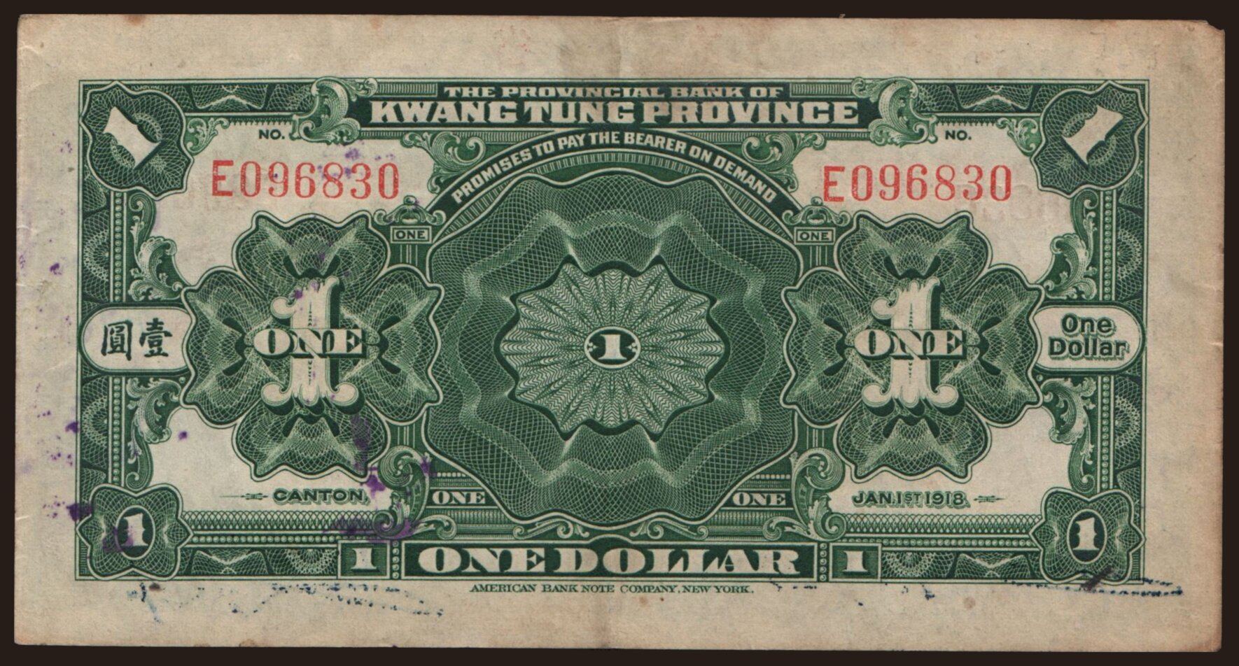 Kwangtung Provincial Bank, 1 dollar, 1918