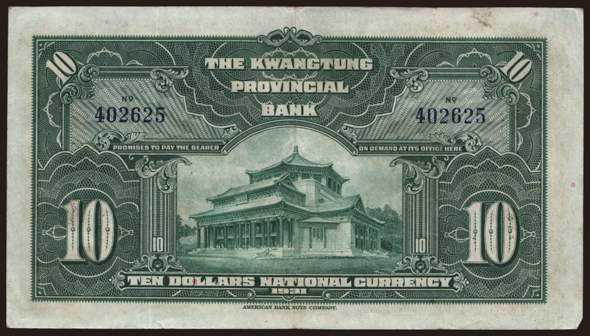 Kwangtung Provincial Bank, 10 dollars, 1931