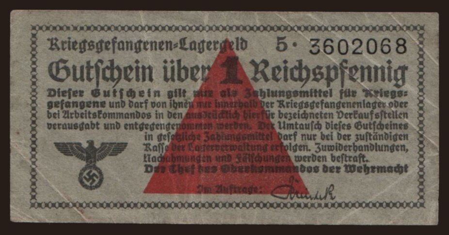 Lagergeld, 1 Reichspfennig, 1939