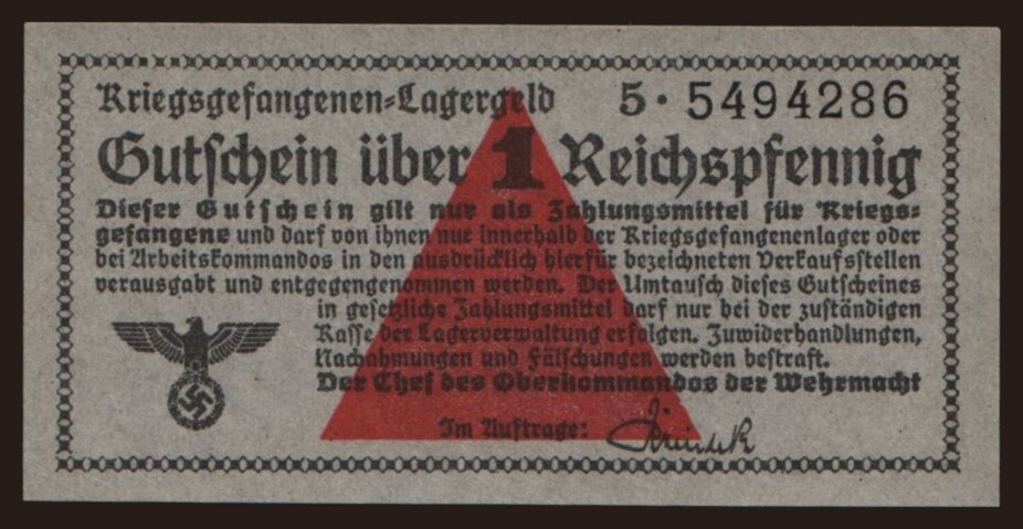 Lagergeld, 1 Reichspfennig, 1939