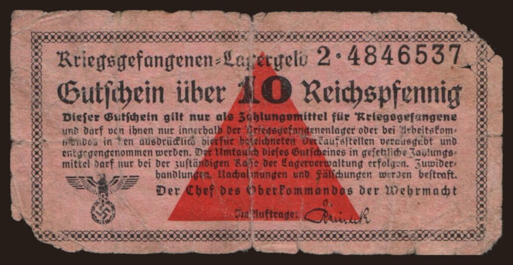 Lagergeld, 10 Reichspfennig, 1939