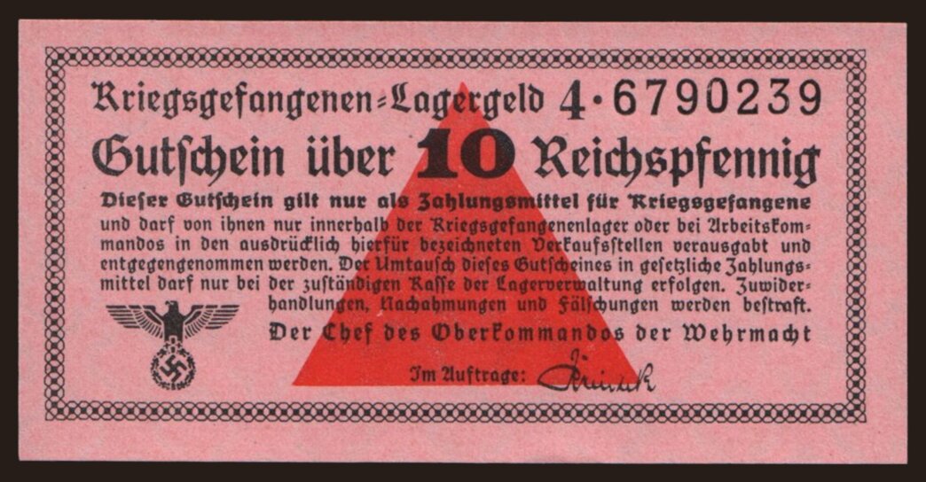 Lagergeld, 10 Reichspfennig, 1939