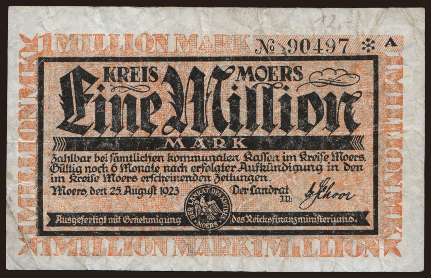 Moers/ Kreis Moers, 1.000.000 Mark, 1923