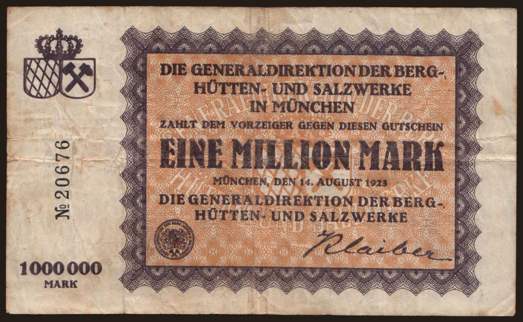 München/ Generaldirektion der Berg-, Hütten u. Salzwerke, 1.000.000 Mark, 1923