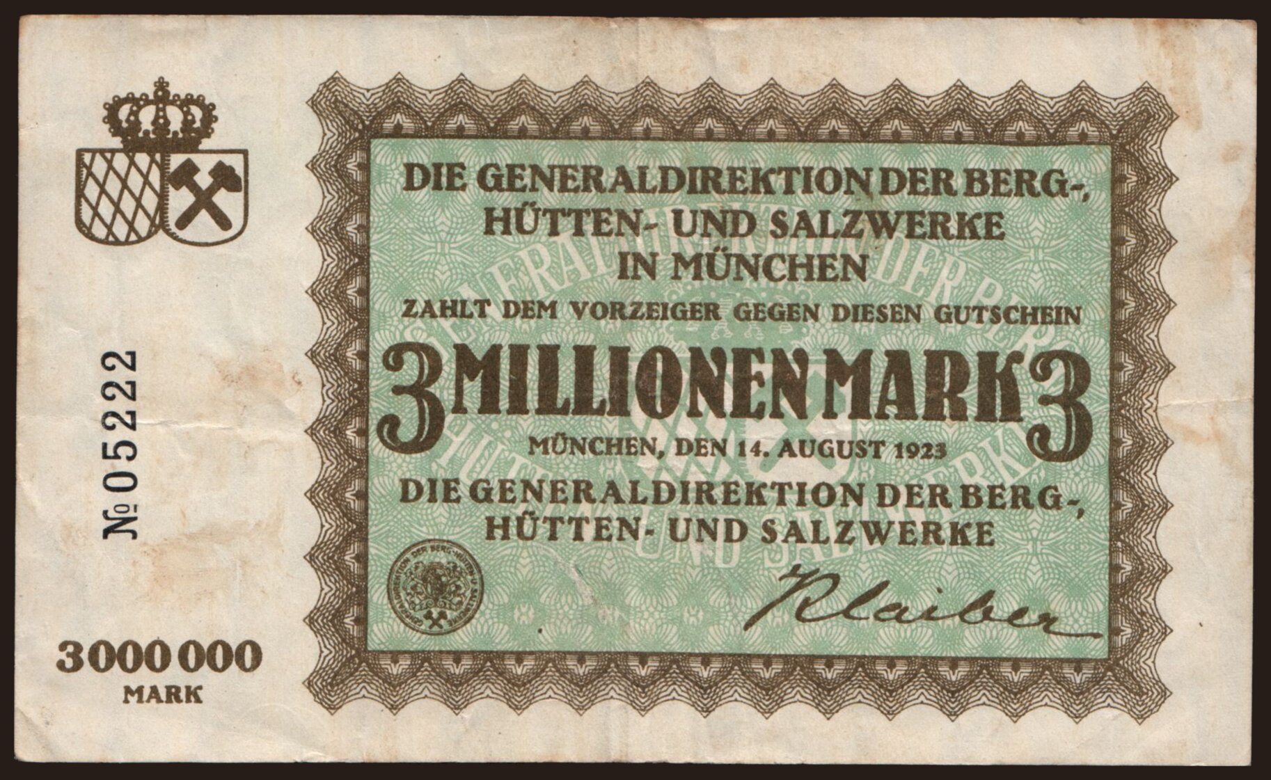 München/ Generaldirektion der Berg-, Hütten u. Salzwerke, 3.000.000 Mark, 1923