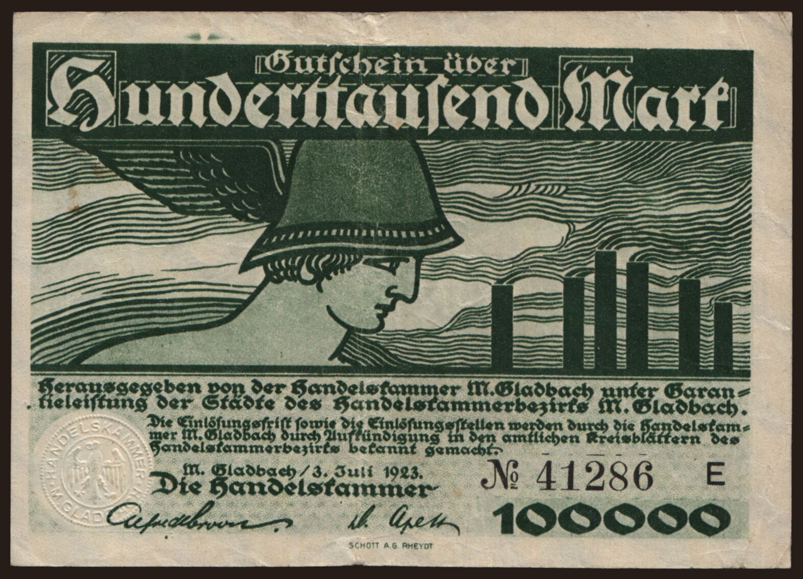 München-Gladbach/ Handelskammer, 100.000 mark, 1923