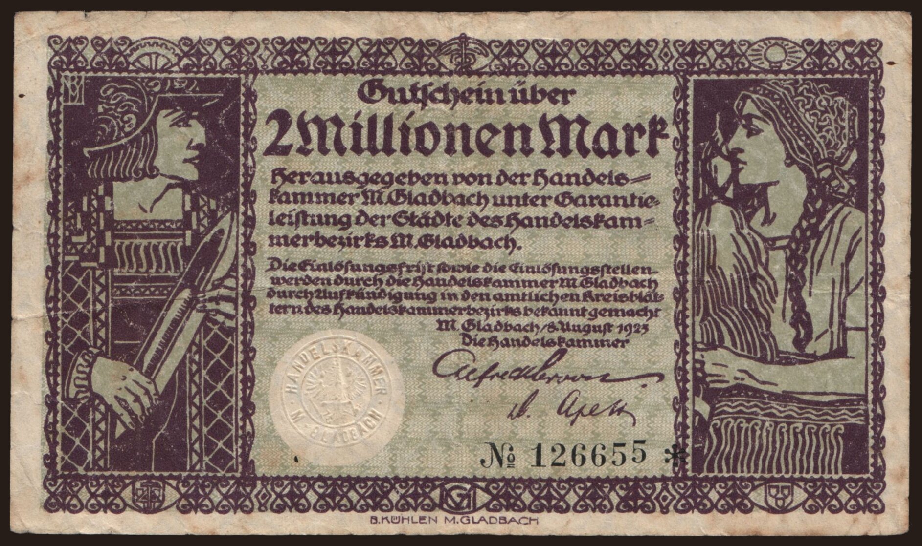 München-Gladbach/ Handelskammer, 2.000.000 mark, 1923