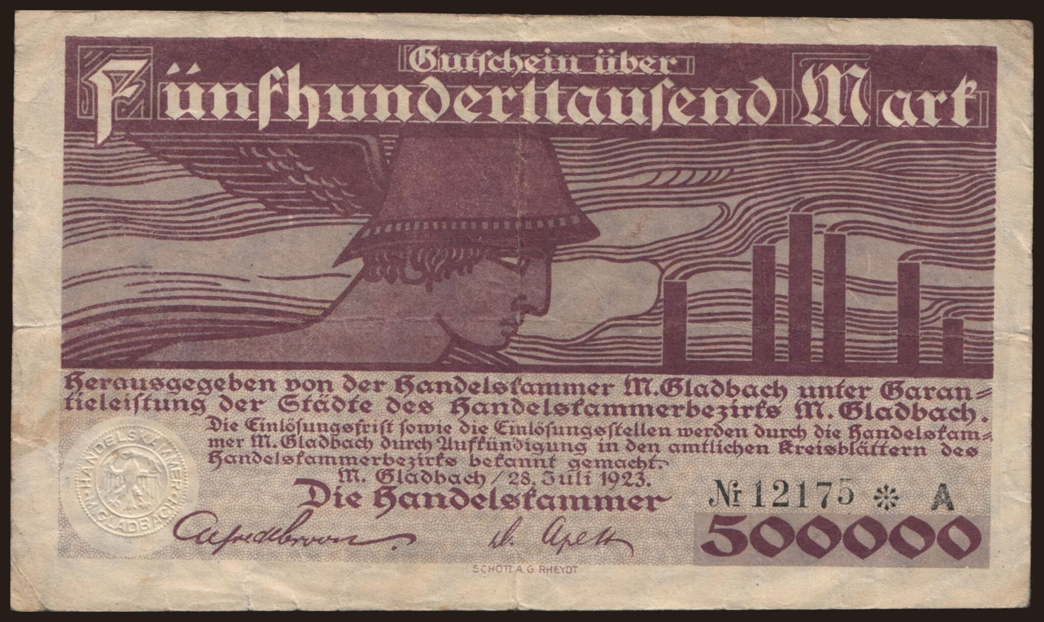 München-Gladbach/ Handelskammer, 500.000 mark, 1923