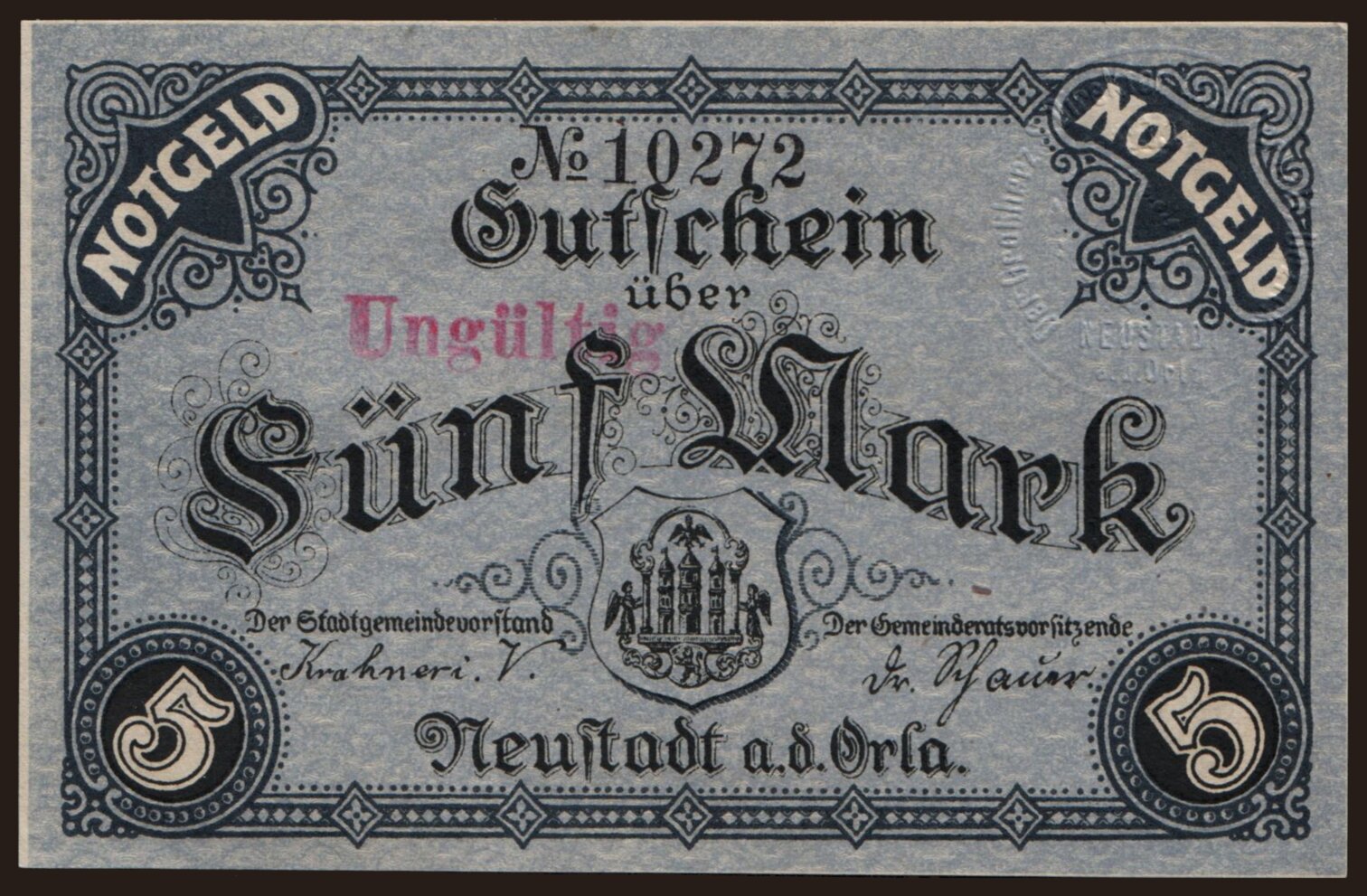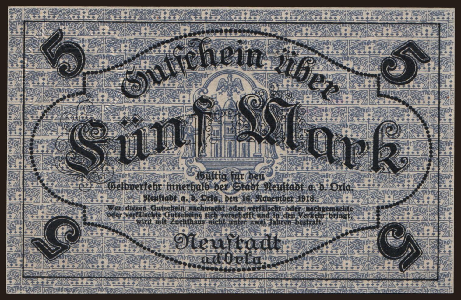 Neustadt a.d. Orla/ Stadt, 5 Mark, 1918