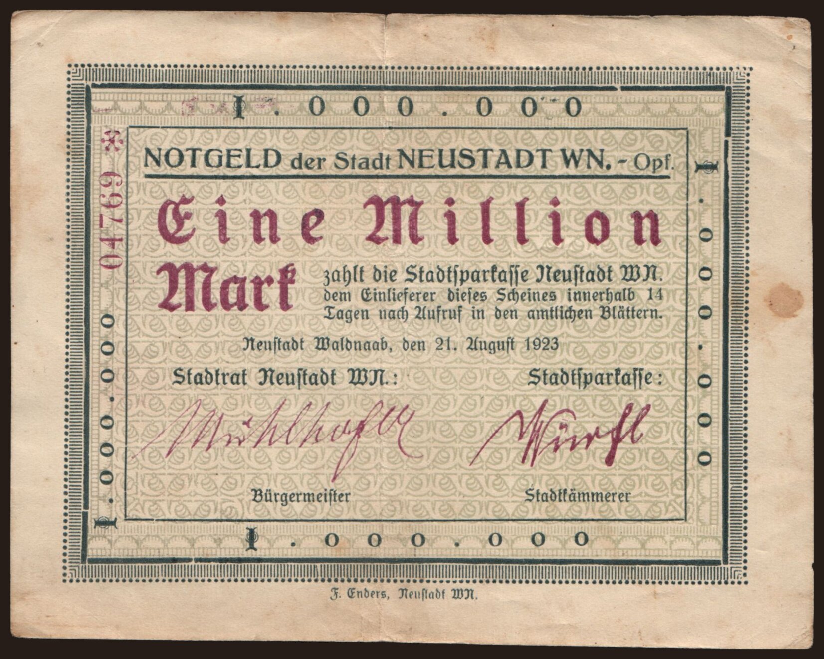 Neustadt Waldnaab/ Stadt, 1.000.000 Mark, 1923