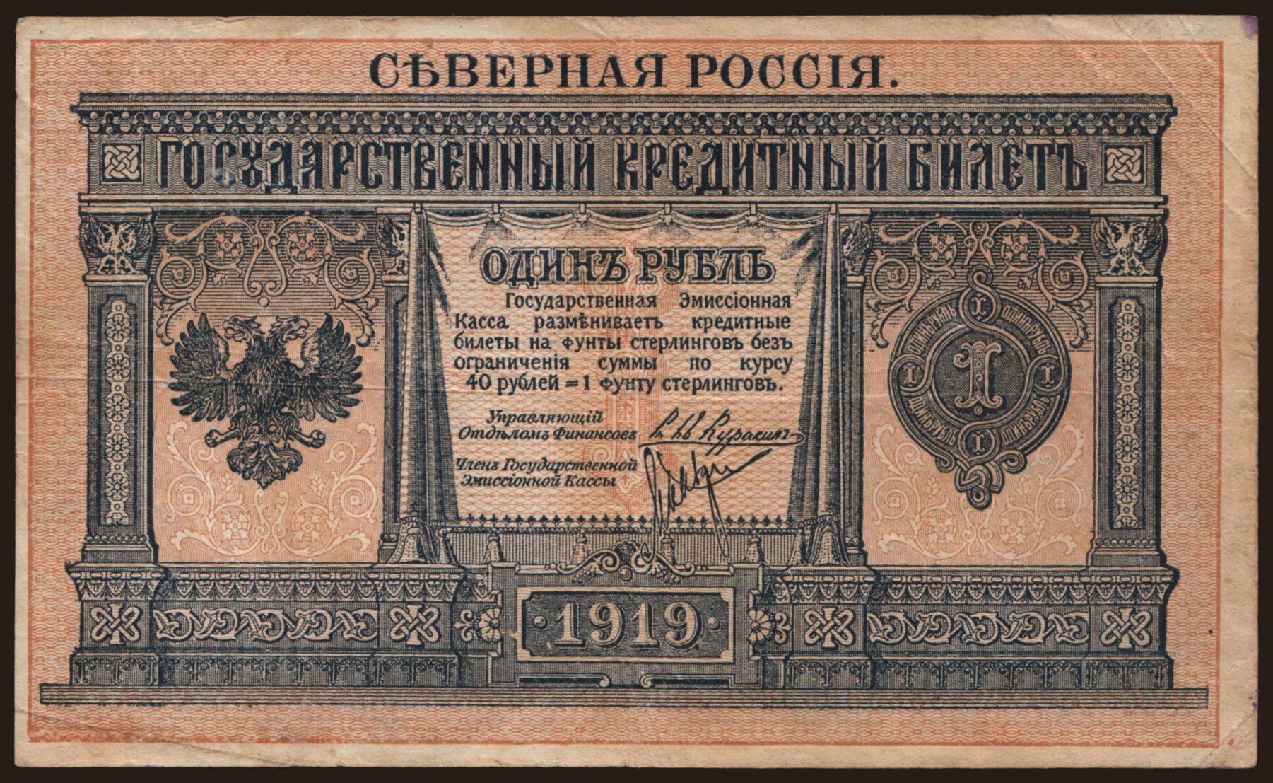 North Russia, 1 rubel, 1919