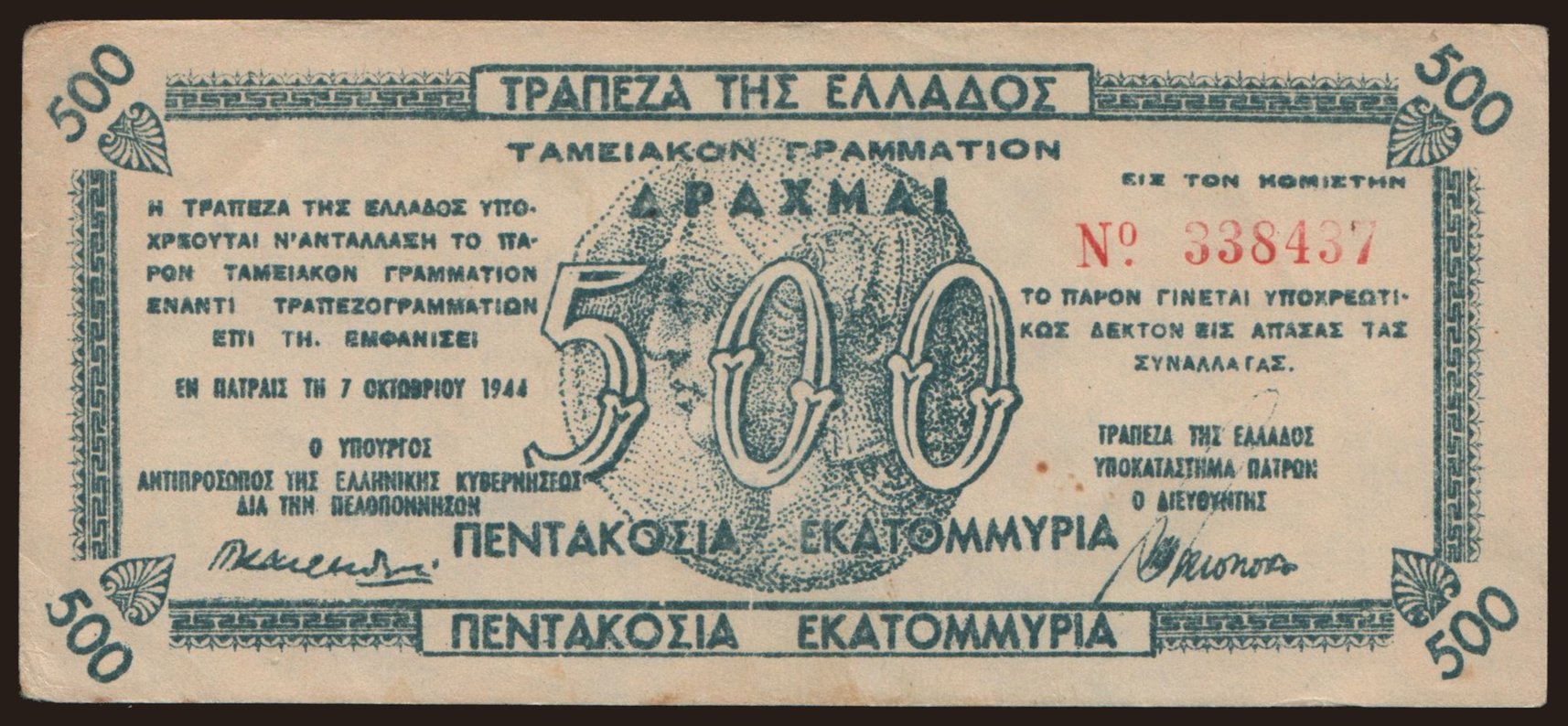 Patras, 500.000.000 drachmai, 1944