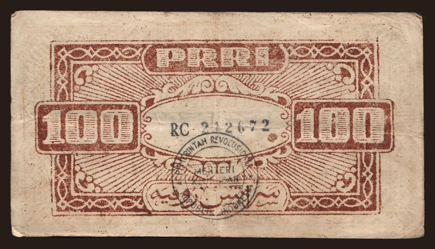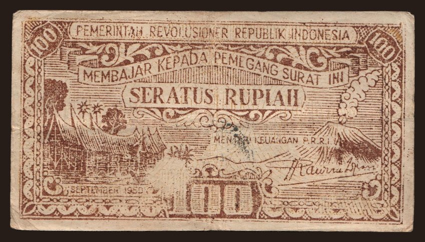 Pemerintah Revolusioner Republik Indonesia, 100 rupiah, 1959