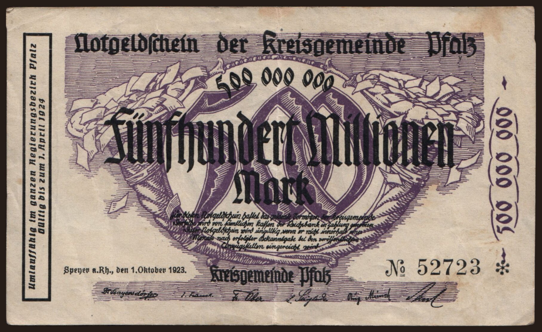 Pfalz/ Kreisgemeinde, 500.000.000 Mark, 1923