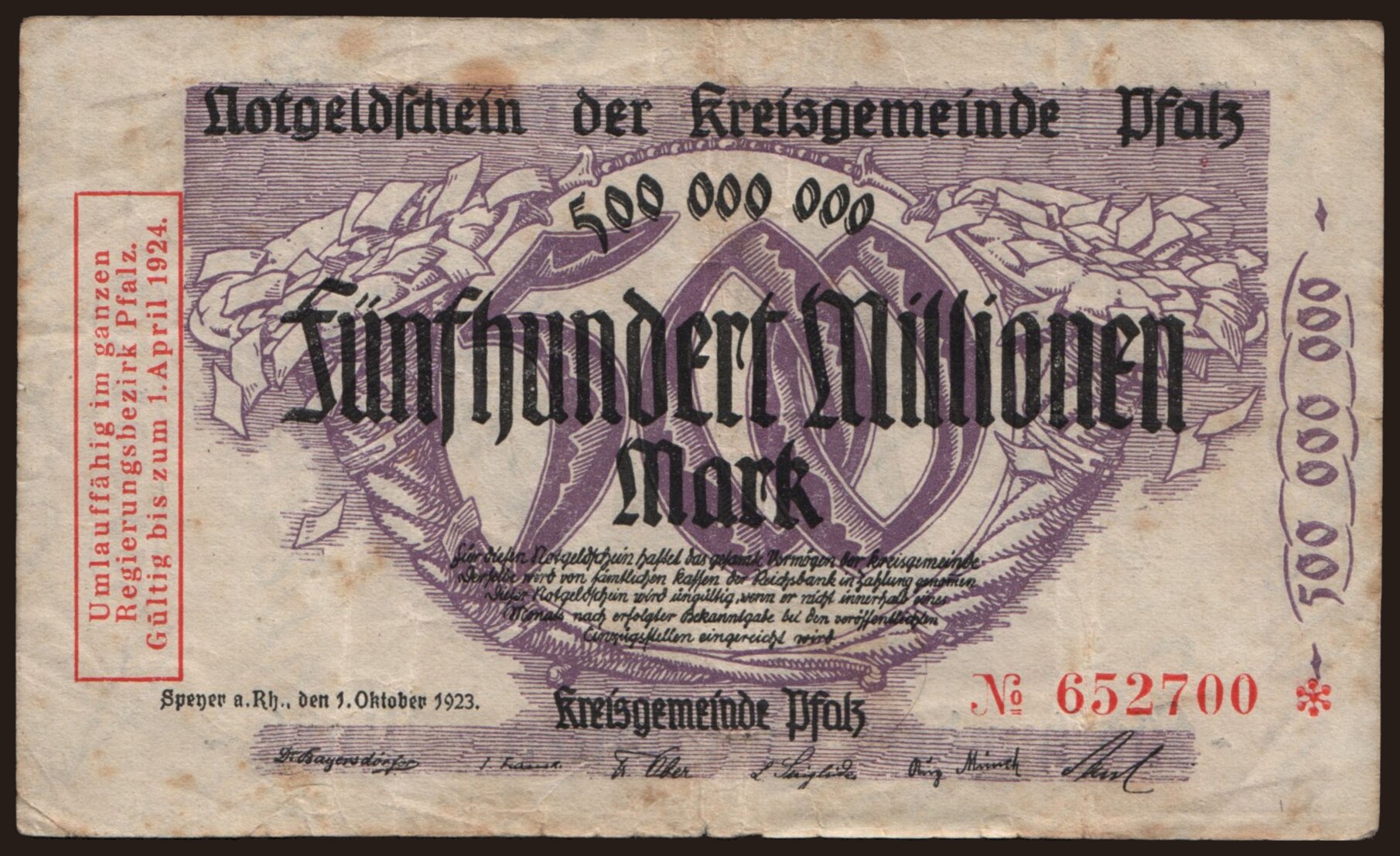 Pfalz/ Kreisgemeinde, 500.000.000 Mark, 1923