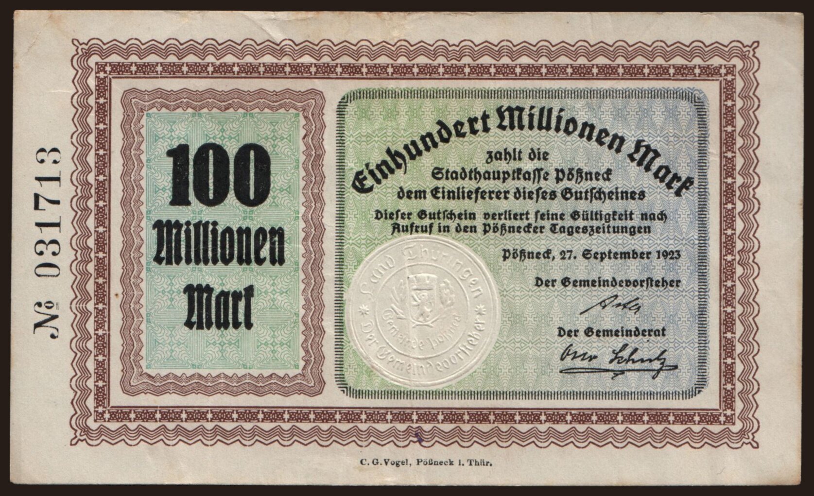 Pössneck/ Stadt, 100.000.000 Mark