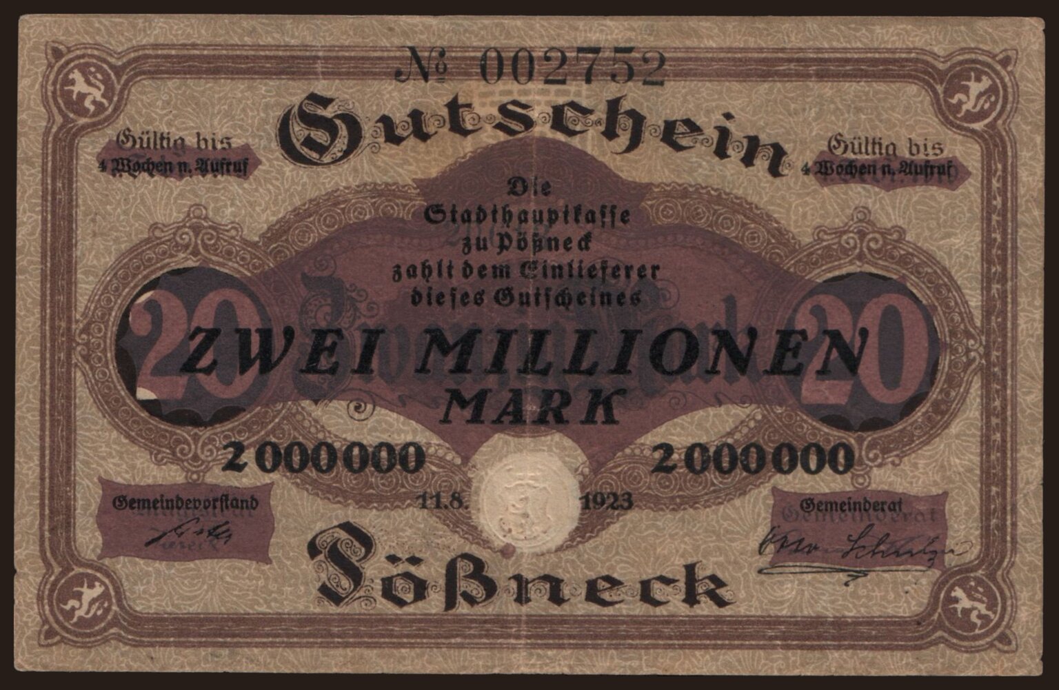Pössneck/ Stadt, 100.000.000 Mark, 1923