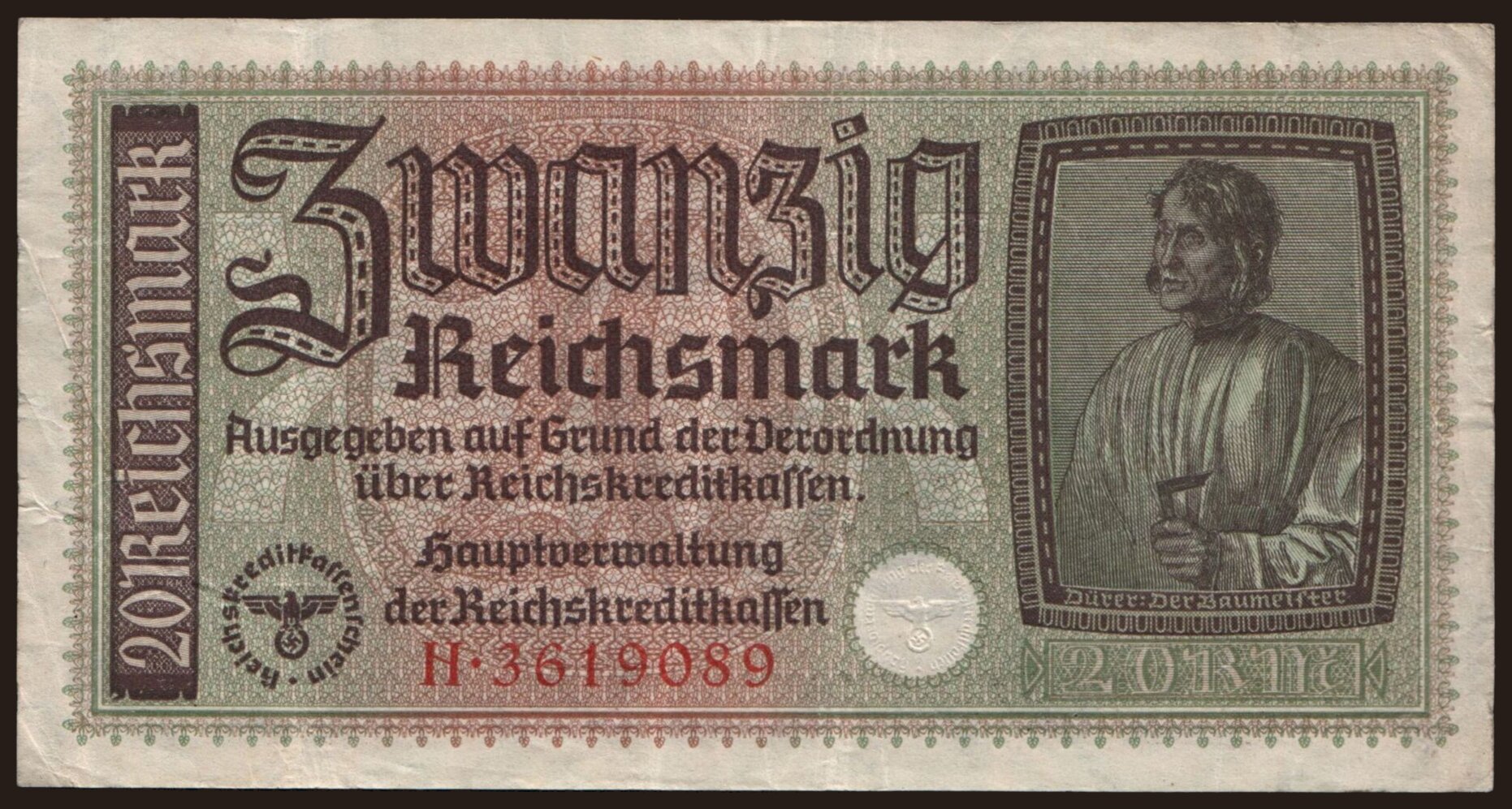 Reichskreditkassenschein, 20 Reichsmark, 1939