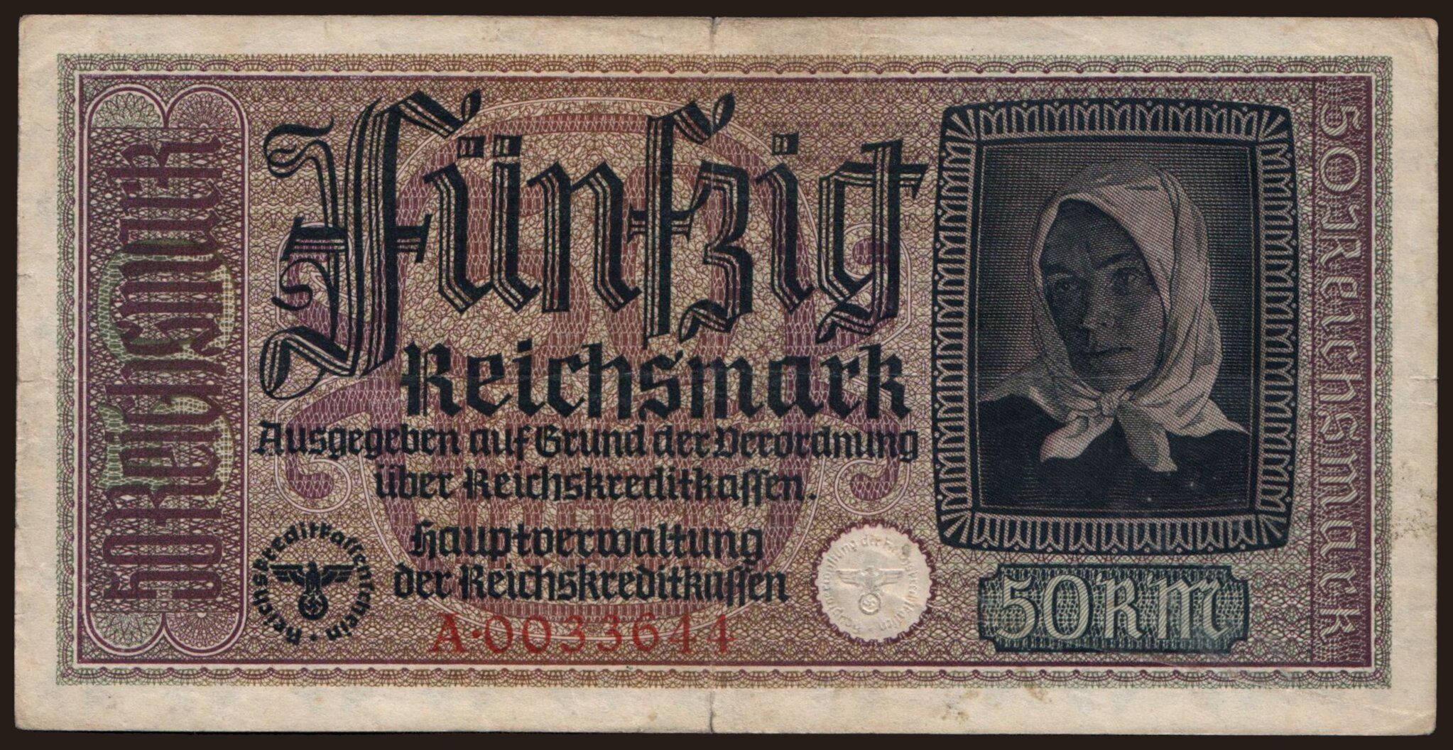 Reichskreditkassenschein, 50 Reichsmark, 1939