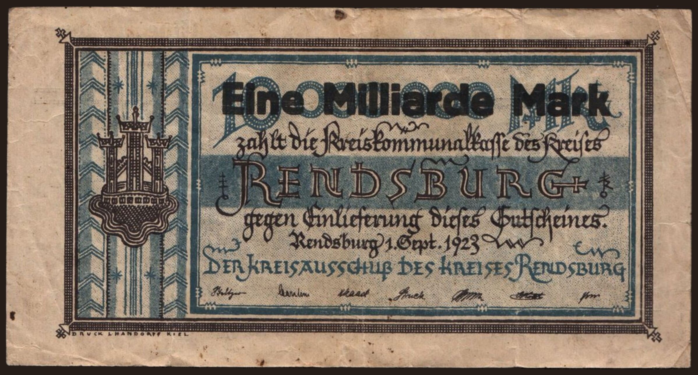 Rendsburg/ Kreisausschuss des Kreises Rendsburg, 1.000.000 Mark, 1923