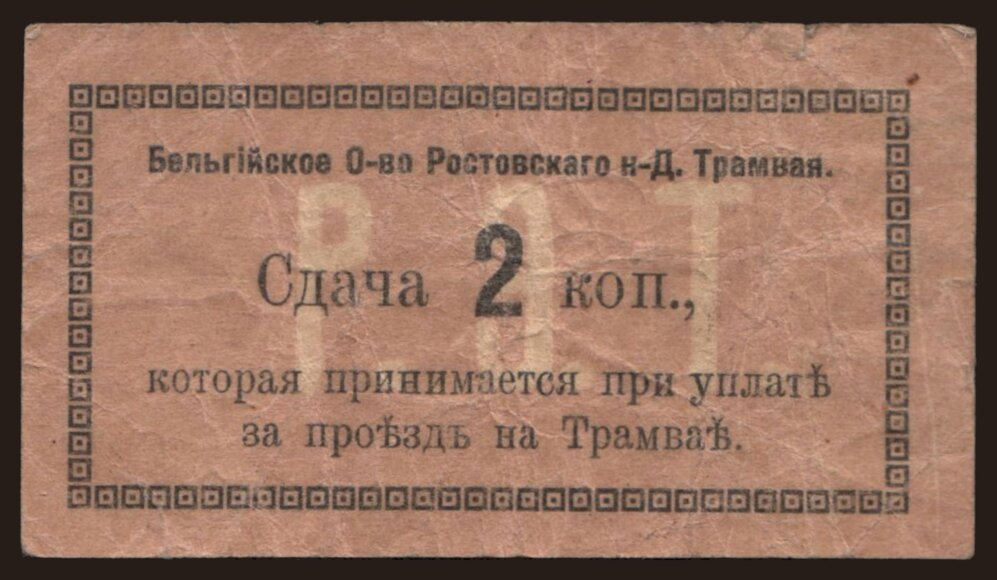 Rostov/ Belgian Society of Tramway, 2 kopek, 1919