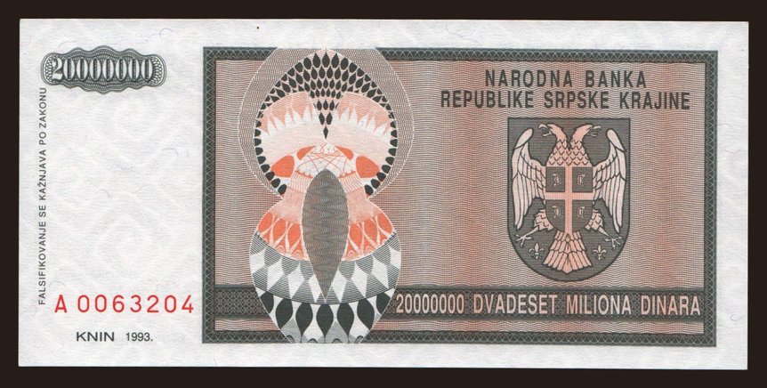 RSK, 20.000.000 dinara, 1993 | TITLE | 23127 | suffix de titre