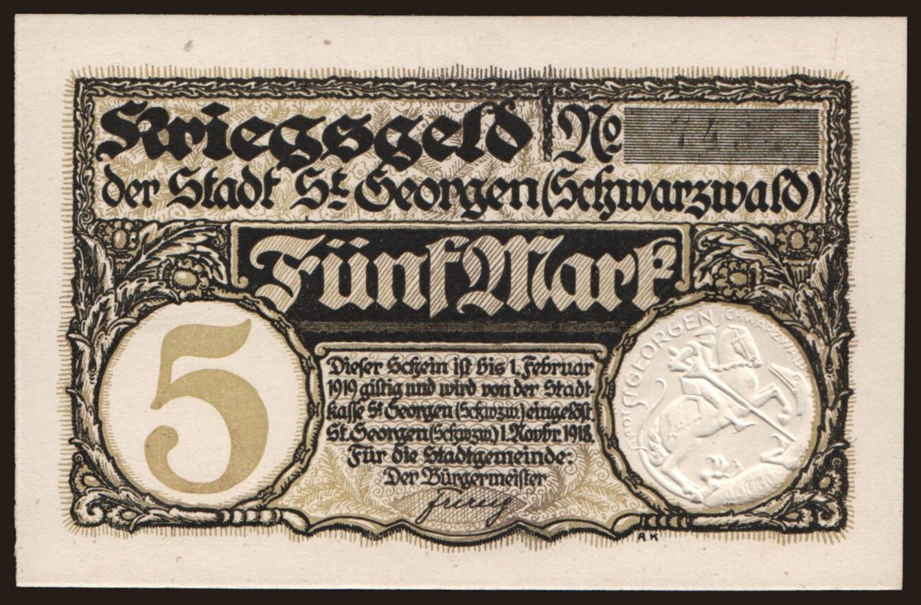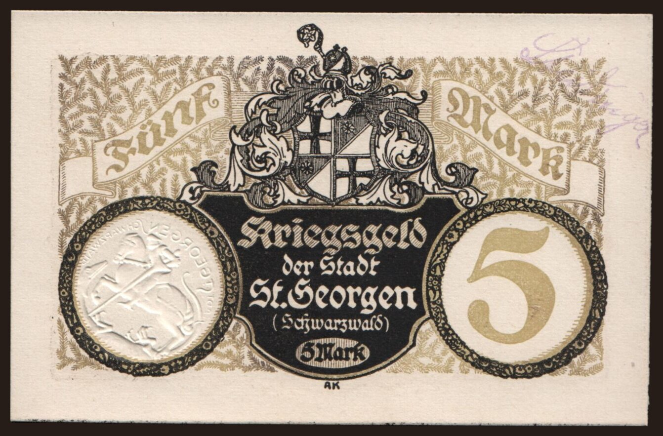 Sankt Georgen/ Stadt, 5 Mark, 1918