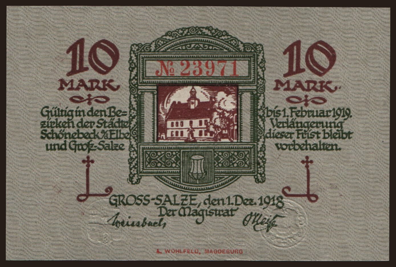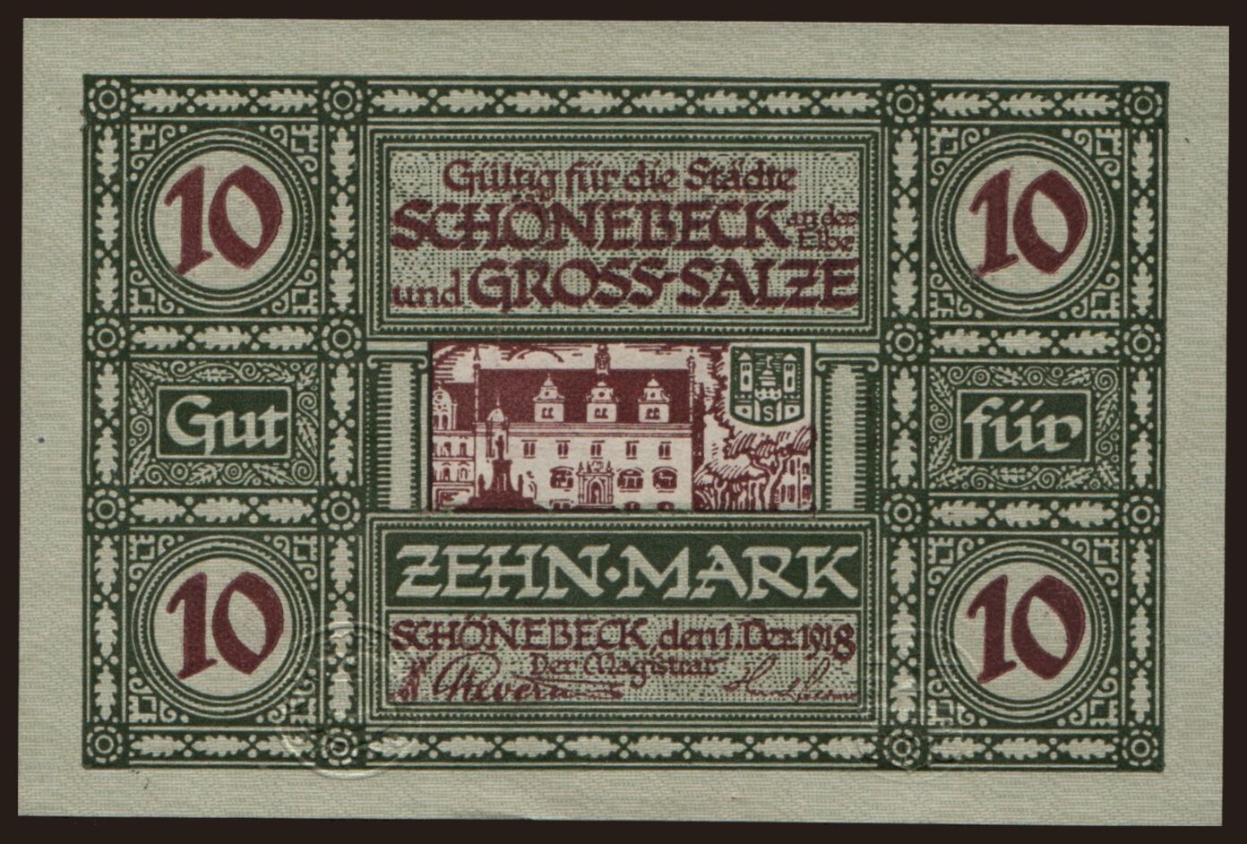 Schönebeck und Gross-Salze/ Städte, 10 Mark, 1918