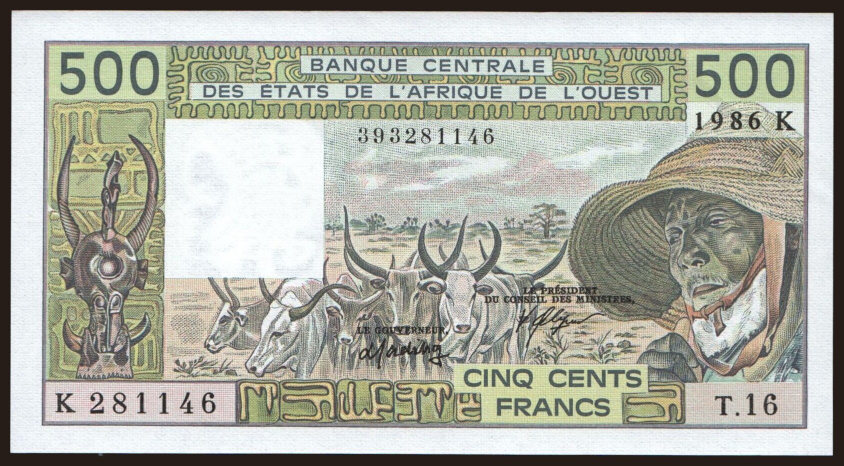 Senegal, 500 francs, 1986