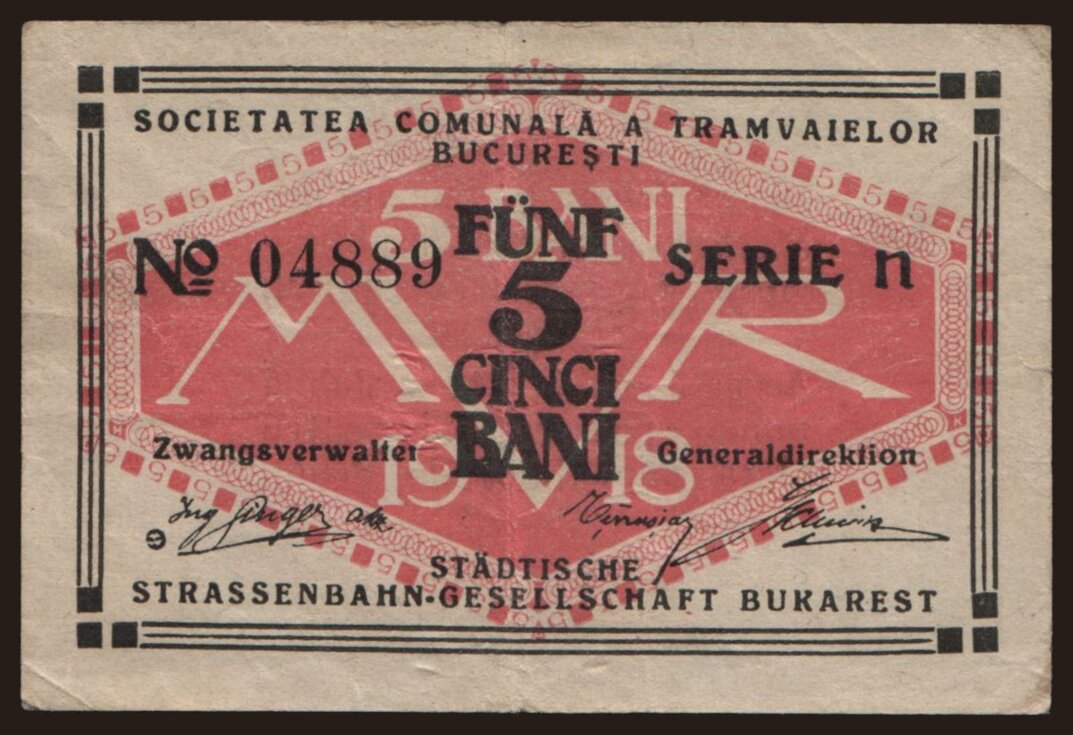 Societatea Comunala a Tramvaielor Bucuresti, 5 bani, 1918