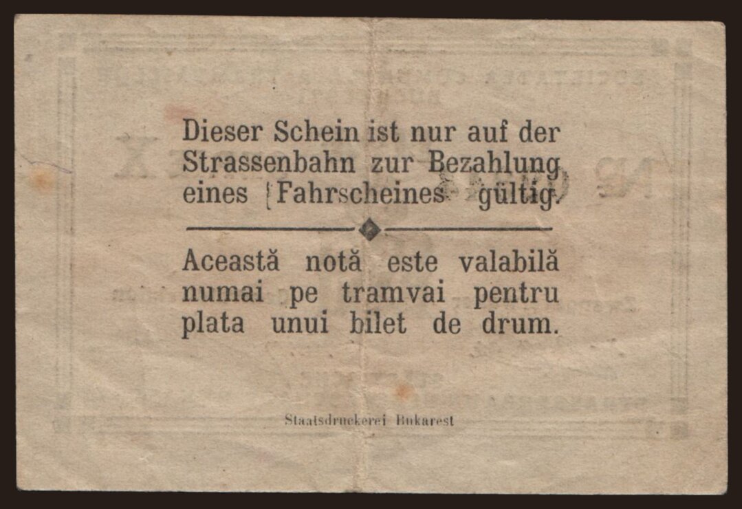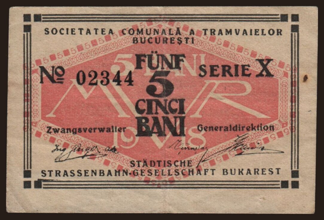 Societatea Comunala a Tramvaielor Bucuresti, 5 bani, 1918