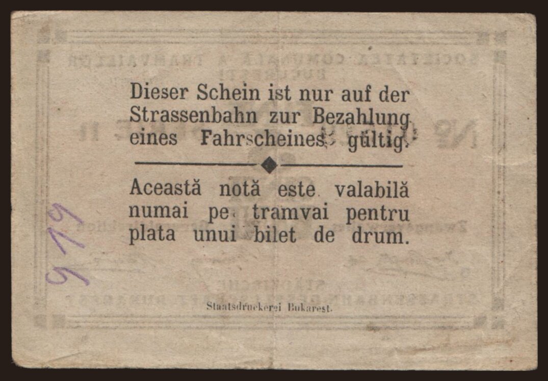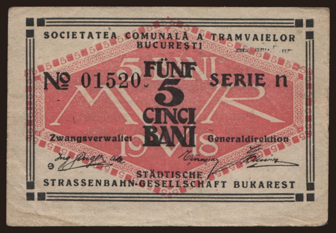 Societatea Comunala a Tramvaielor Bucuresti, 5 bani, 1918