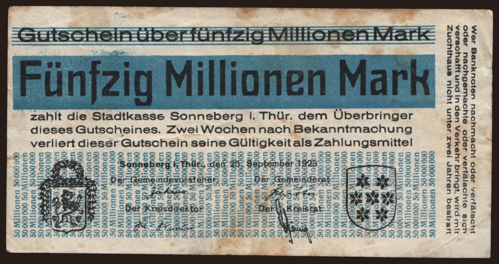 Sonneberg/ Stadt und Kreis, 50.000.000 Mark, 1923
