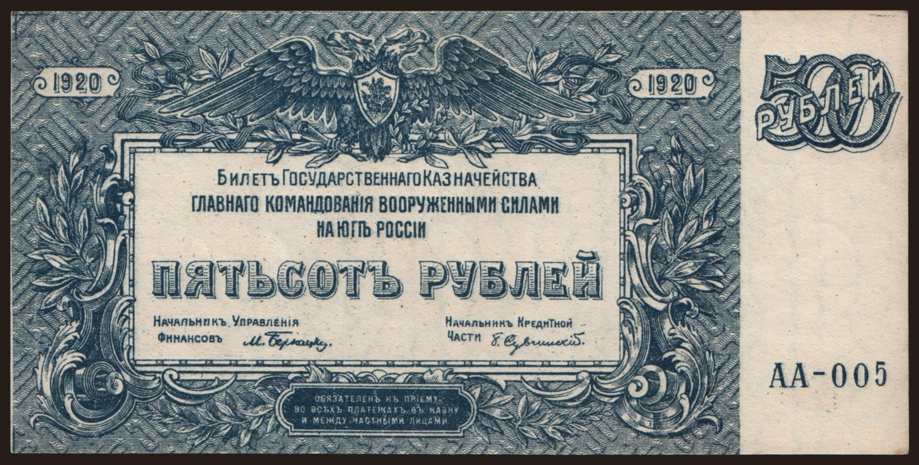 South Russia, 500 rubel, 1920