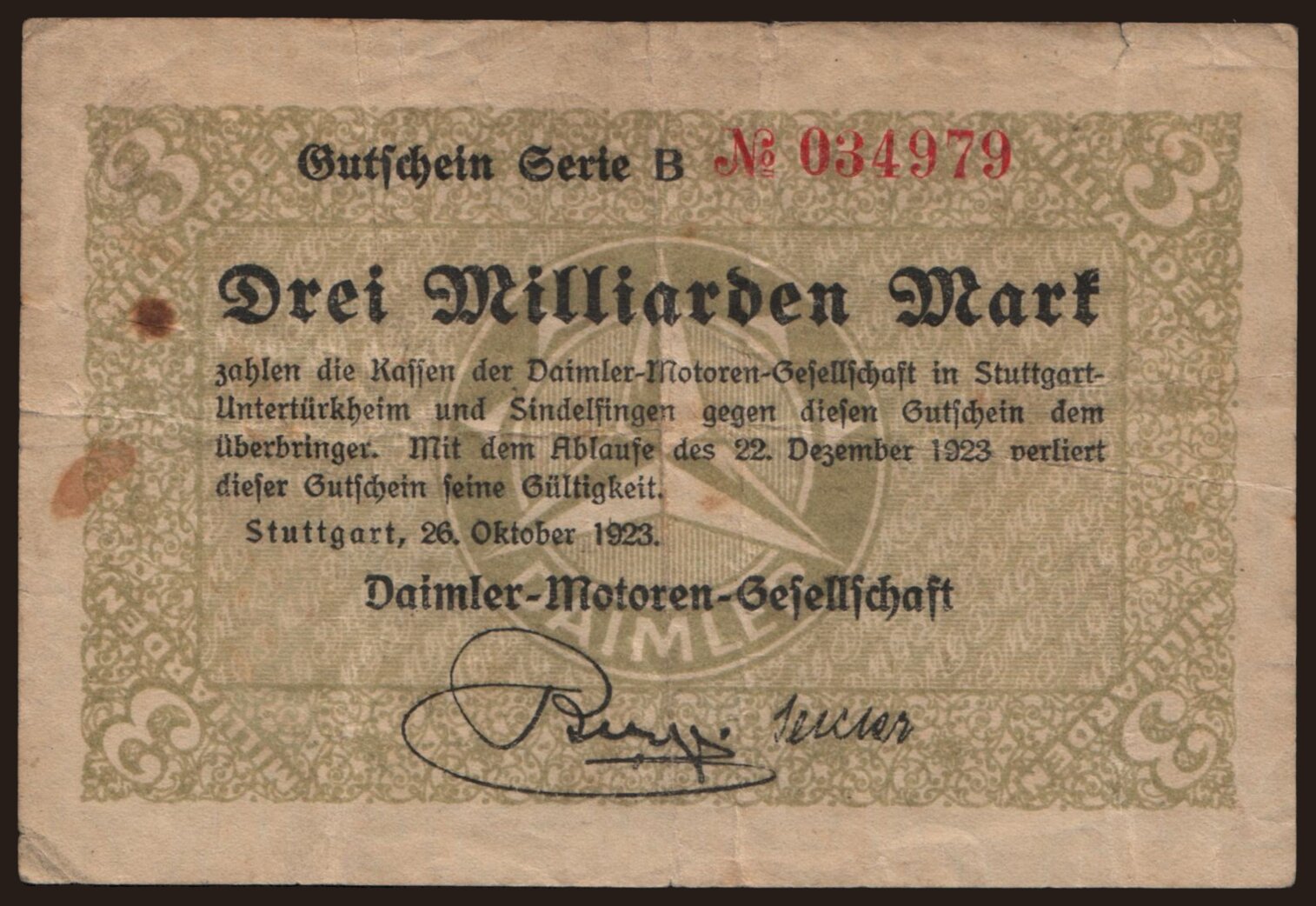 Stuttgart/ Daimler-Motoren-Gesellschaft, 3.000.000.000 Mark, 1923