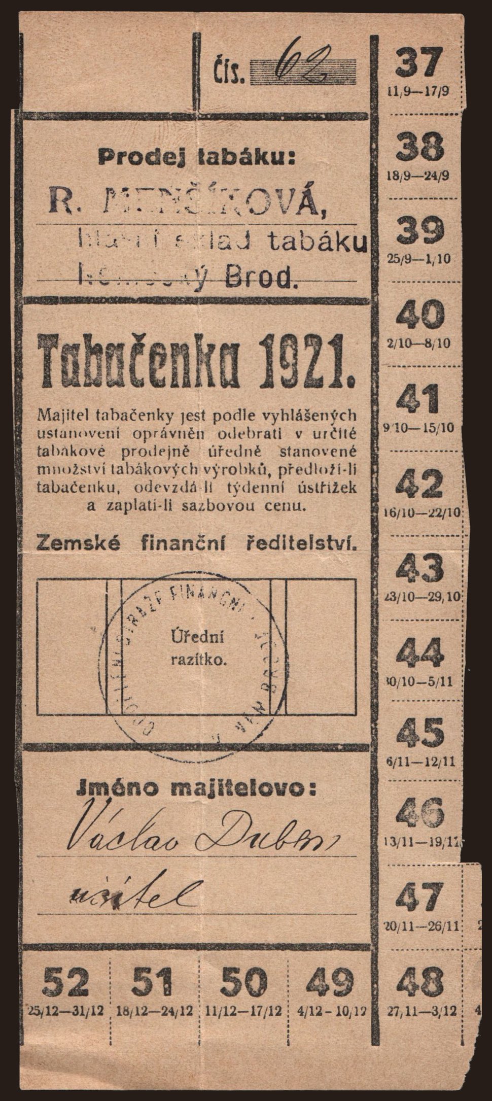 Peryferie, Bilety na racje żywnościowe, Królestwo Czech i Czechosłowacja